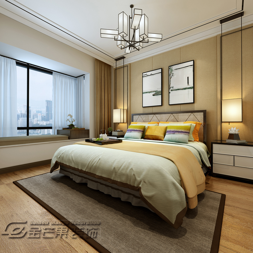 惠景園135㎡ 簡中風格 臥室效果圖 金芒果裝飾設(shè)計師 出品
