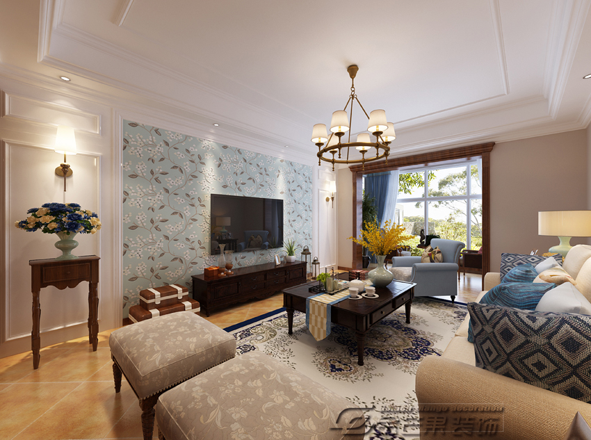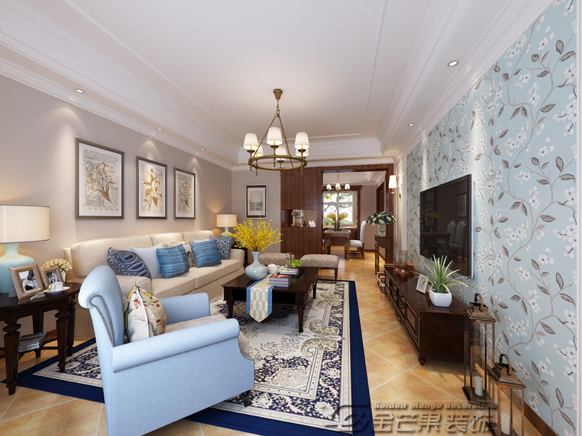 紫東尚苑105㎡  東南亞風格  客廳效果圖 金芒果裝飾設計師:姜海濤 出品