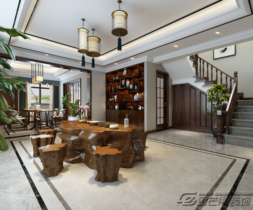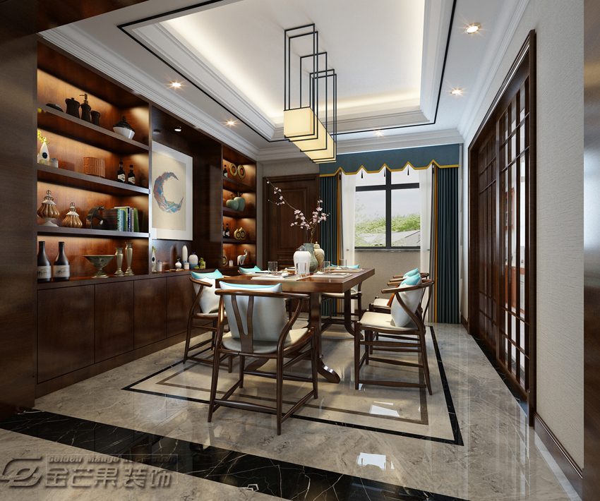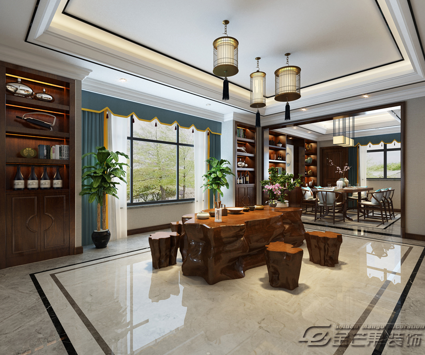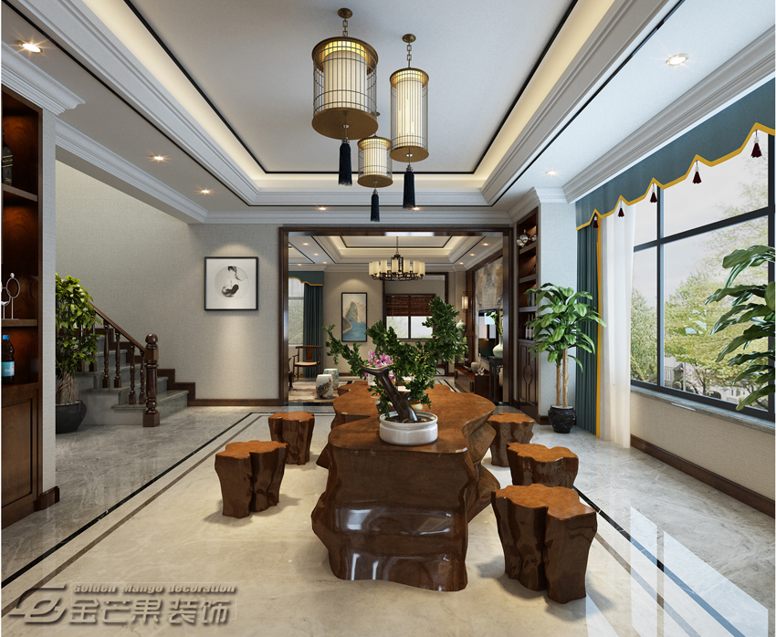 公務員小區260㎡ 簡中風格 茶室效果圖 金芒果裝飾設計師:劉峰 出品