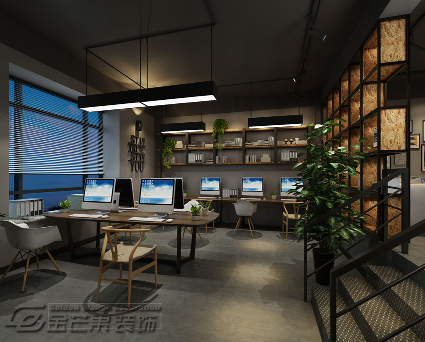 思蘭雅苑350㎡ 工業(yè)風(fēng)格 工作區(qū)效果圖 金芒果裝飾設(shè)計師:李應(yīng)剛 出品