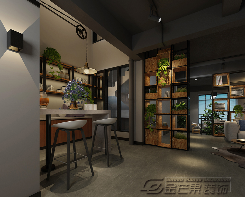思蘭雅苑350㎡ 工業(yè)風(fēng)格 吧臺效果圖 金芒果裝飾設(shè)計師:李應(yīng)剛 出品