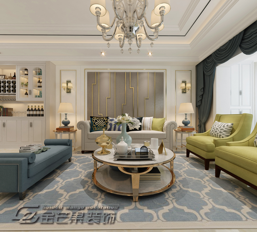潤城第三大道176㎡  簡歐風格    客廳效果圖 金芒果裝飾設計師:李應剛  出品
