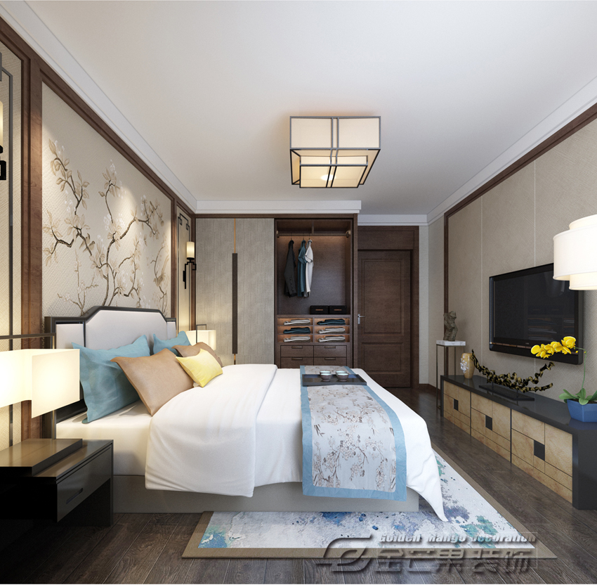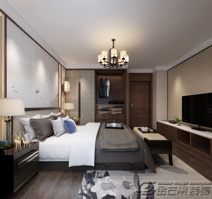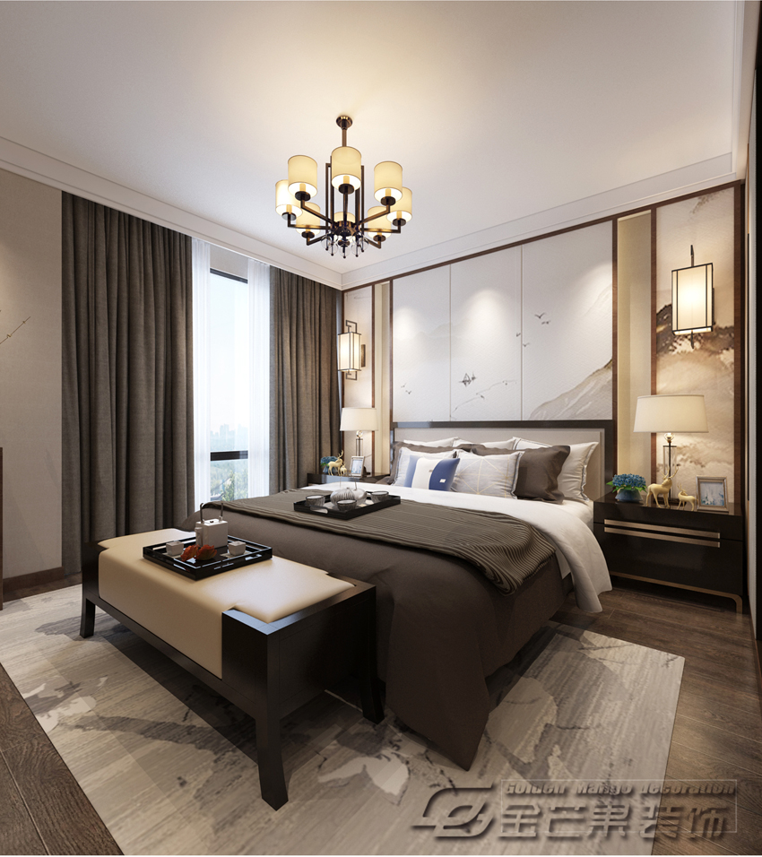 翠湖水晶公寓150㎡ 新中式風格 臥室效果圖 金芒果裝飾設(shè)計師:徐祎珅 出品