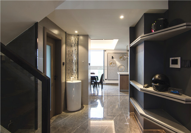 本案是格調、品質的現代風格裝修,以充滿品質感的灰黑色為主色調,以時尚、精雅的設計筆觸,讓空間充滿現代家居格調和品質感,以及家的舒適和溫度。