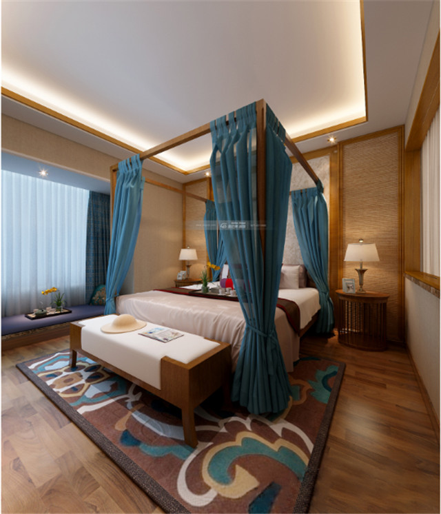 本案是充滿異域風情的東南亞風格裝修,用大膽的配色,濃厚的色彩,充滿自然氣息的家具、裝飾、線條打造富有熱烈、格調和美感的異域風情。其熱情、妖嬈、個性的美感,讓家呈現一種別具一格的家居特色。