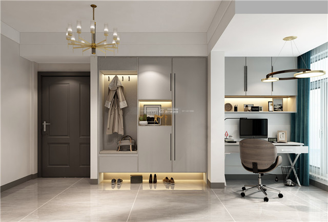 入戶設(shè)置卡座和玄關(guān)柜,方便收納,進出之間更方便。相鄰辦公區(qū)域,即可辦公亦可休閑,讓家居更加多變,功能性更強,品質(zhì)更加提升。
