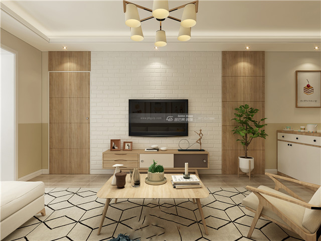 客廳的色彩承襲了北歐風(fēng)格一貫的傳統(tǒng),溫暖的配色簡單大方,原木的應(yīng)用也在家具和墻板的呼應(yīng)中達(dá)到一個(gè)平衡。吊頂?shù)呐珶魩檫@個(gè)家更是增添一份溫柔。