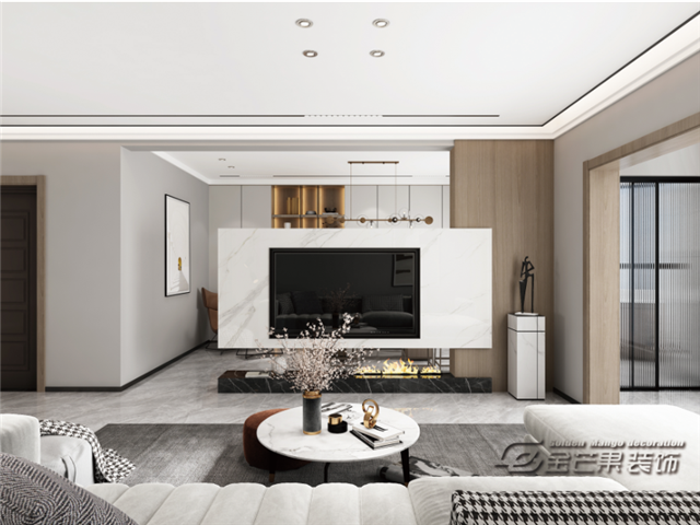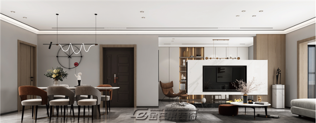 獨(dú)特的電視背景墻造型,增加空間層次感,隔而不斷的設(shè)計(jì)也顯得更加的通透,打造現(xiàn)代居家的時尚個性和溫馨感。