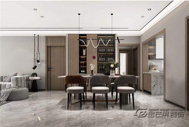 開放式客餐廳互動性更強(qiáng),靈動性更強(qiáng),讓空間更顯開闊,同時也更加溫馨。邊吃飯邊和沙發(fā)上的互動,讓房間多了更多的煙火氣。