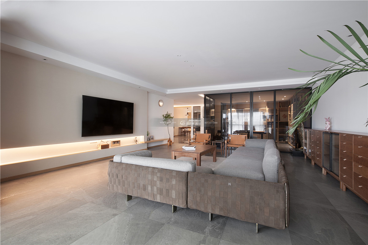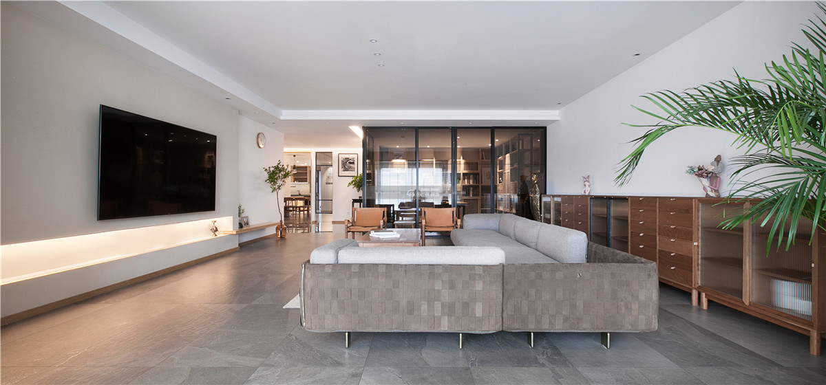 簡潔的白色吊頂,無主燈設計渲染純粹的心境。簡單大氣的家具陳設鋪陳出如君子般磊落的空間格調,都市里的山隱,心境亦開闊自由。