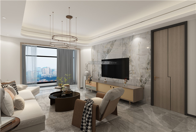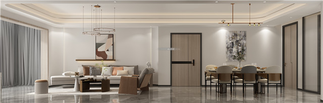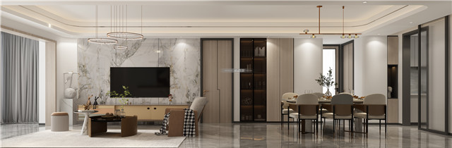 大理石電視背景墻灰玻和木材,豐富材質(zhì)的互動(dòng)與碰撞,展現(xiàn)豐富的空間格調(diào)。開放的客餐廳設(shè)計(jì),讓情感充分融合,讓美好充分流動(dòng)。