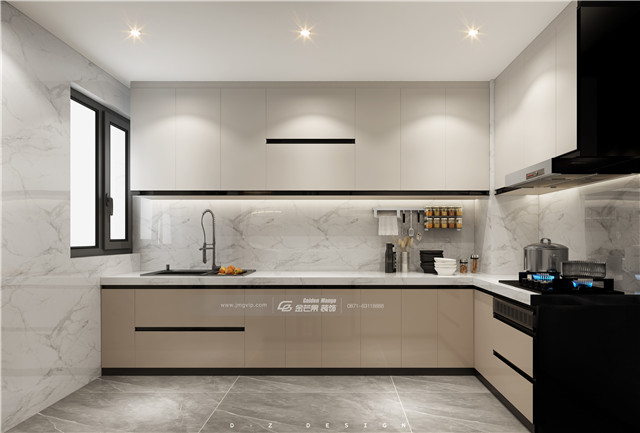 黑色和米白色,大理石,精致的燈飾,營造剛剛好的高級感氛圍,讓烹飪變得更加有格調感。
