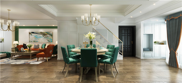 綠色的電視背景墻充滿個性,美式家居摩登中的復古最是迷人,彰顯奢華的高級感。