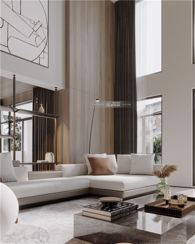 豪宅里最“霸氣”的客廳,雙層落地玻璃窗戶,收獲雙層建筑的視覺和景觀,既增加良好的采光,又讓房間變得高級而富有格調感。