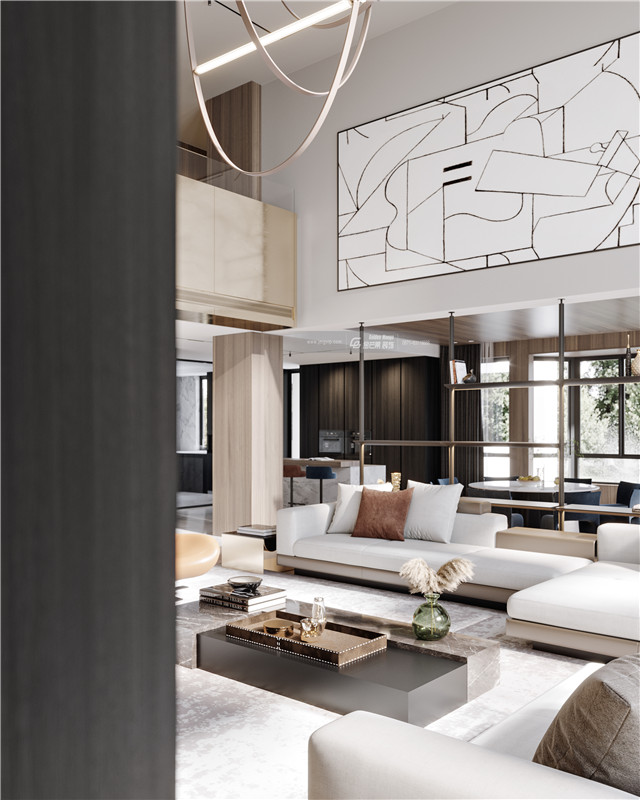 大氣的裝飾畫,隔而不斷的空間感讓大宅的簡約氣質盡情展露。空曠的設計感讓別墅大宅擁有了專屬的非凡氣質。