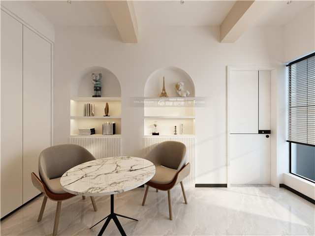 兩個拱形的設計,讓房間馬上有了可愛和甜美,擺上幾件精致的擺飾,搭配簡約可愛的餐桌椅,一切都變得有趣起來。