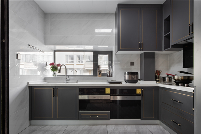 直白的線條表達(dá)自由的空間態(tài)度,金色線條增加輕奢感。柜體的顏色搭配不禁讓空間多了一些優(yōu)雅的格調(diào),讓烹飪變得更加高級。