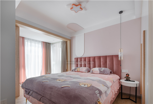 粉嫩的兒童房是孩子的樂(lè)園,編制一個(gè)童話故事里的世界。深淺不一的粉色甜美溫馨,活潑靚麗,描繪著絢麗多姿的糖果般的夢(mèng)幻花園。