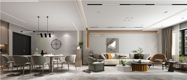 灰色基調(diào),白色沙發(fā),輔以亮色和燈飾營(yíng)造空間溫馨靚麗的效果。