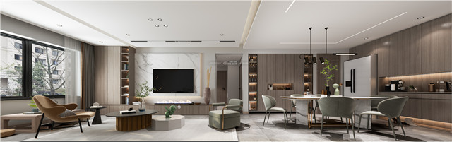 開(kāi)放式客餐廳,元素互相呼應(yīng),氛圍互相補(bǔ)充,家居互動(dòng)性良好。