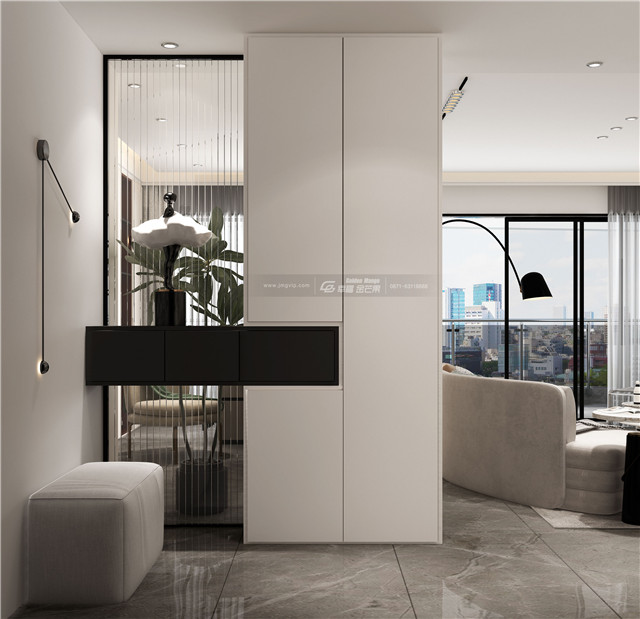 避免入戶視線一通到底,用玄關讓空間層次感更豐富。隔而不斷,隱而微現,若隱若現間,光影下的家居高級感得以展現。入戶玄關半隔斷,一進門互動感隨即展現,避免產生封閉的感覺。