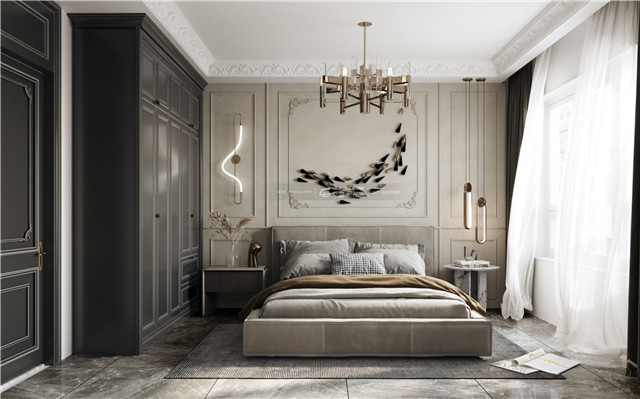 高級(jí)暗黑色的神秘優(yōu)雅氣息,展現(xiàn)氣質(zhì)優(yōu)雅的適合舒睡的就寢空間。床頭背景精美的裝飾,將空間格調(diào)拉滿,靜謐又溫柔,又甜又颯,韻味十足。