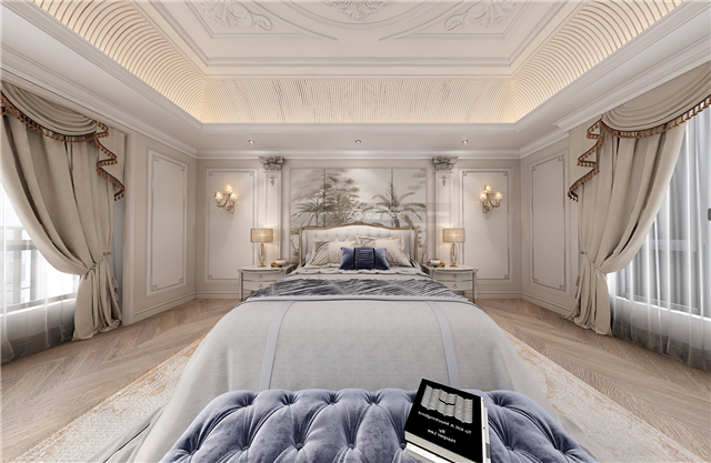 恢弘的頂面設計,讓整個空間看起來大氣無比,華麗的墻面設計,舒適的床品,無拘無束的自在空間。