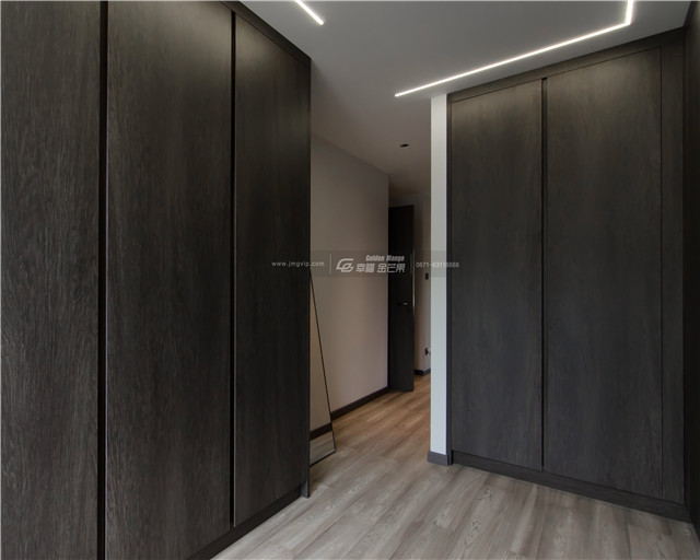 衣帽間 柜體選用和客廳相同的style,這也是明先生一直追求的統(tǒng)一性。簡(jiǎn)易的飄窗臺(tái),也為換選衣物提供了不少便利。