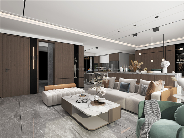 整體冷靜、安靜自在的氣質(zhì),井然有序的空間節(jié)奏,撫平煩躁的心緒,心思也變得有條理了起來。采用灰色地磚和大面積木飾面設(shè)計(jì),空間變得沉靜而富有文藝高級的氣質(zhì)。簡約的線條設(shè)計(jì),加上大理石的點(diǎn)綴,絲絨材質(zhì)的抱枕,整體空間奢華而沉靜內(nèi)斂。