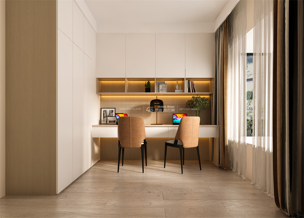 書房全屋整體以留白與原木色調(diào)組成,整個書房散發(fā)著濃濃的溫潤質(zhì)感,充滿了自然與藝術(shù)氣息,舒適簡單,怎么看都很喜歡。
