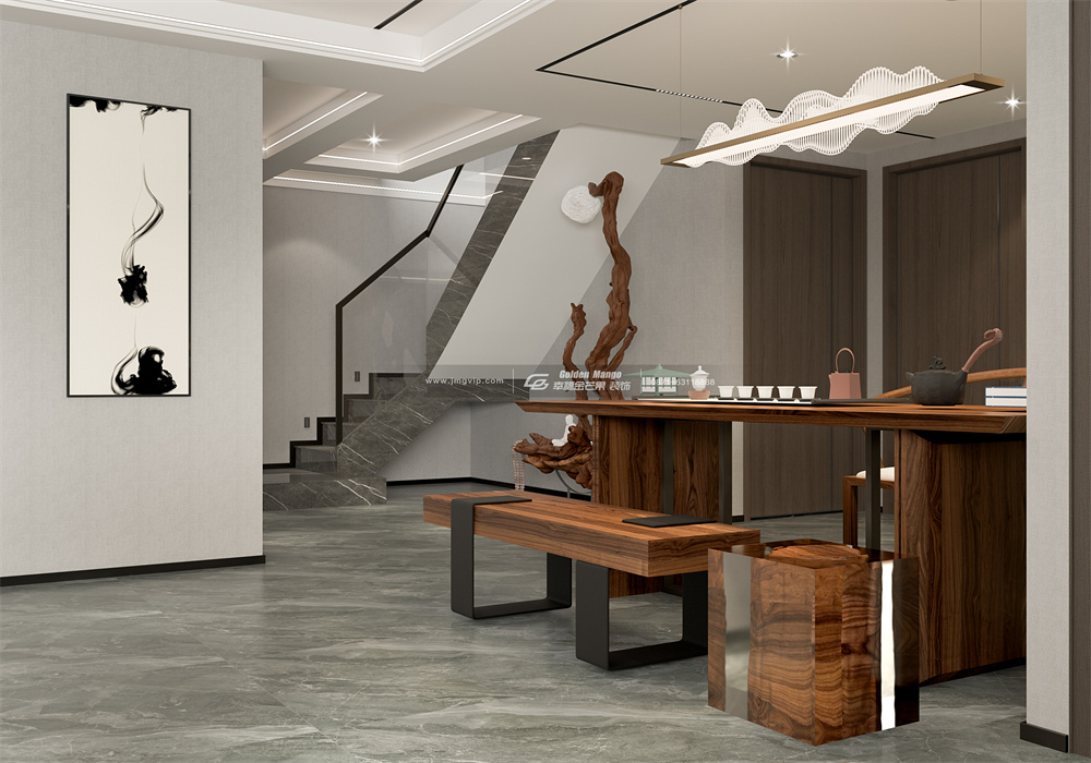 當(dāng)代很多年輕人提到中式裝修風(fēng)格,普遍會(huì)偏向認(rèn)為這都是“老年人”喜歡的,容易為其套上“古板”、“封建”、“沉悶”的刻板印象。于是新中式裝修風(fēng)格應(yīng)運(yùn)而生,將中式傳統(tǒng)文化元素與現(xiàn)代時(shí)尚裝修風(fēng)格充分融合,在滿足人們的現(xiàn)代化生活需求的同時(shí)詮釋古典文化在現(xiàn)代生活的延續(xù)。幸福金芒果裝飾對(duì)于映像美廬復(fù)式裝修就完美體現(xiàn)了這一特點(diǎn)。