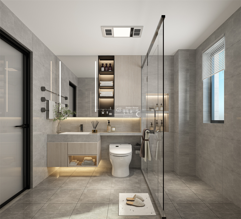 衛(wèi)生間整體以素色大理石鋪貼,耐臟耐看又簡約大氣;靠近窗臺的地方分割淋浴區(qū),做到干濕分離;以玻璃做隔斷,增加衛(wèi)生間采光,干凈通透感的衛(wèi)生間,愜意家居生活不可或缺的一部分。
