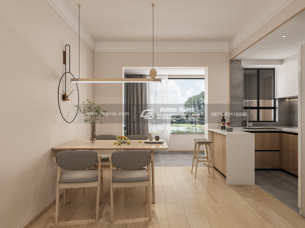 原木色是屬于大自然的顏色,自帶溫柔舒心感,讓全屋散發舒適怡人的氣息,置身其中,不由得倍感輕松。同時,木質的溫潤也散發著歲月譜寫的詩意,令人時刻感受到家的溫暖。幸福金芒果裝飾,用溫柔的裝修設計,給你居家最愜意的時光。