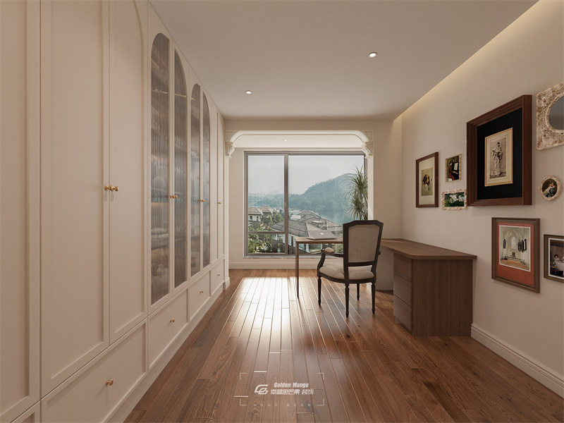 把裂痕裱進相框,回憶織成經網,復古的氛圍更顯溫馨。低飽和度的顏色,營造放松的氛圍,更有利于擁有良好的睡眠。法式的貴氣展露著低調的奢華,浪漫優雅的感覺彌漫在空間每一個角落。