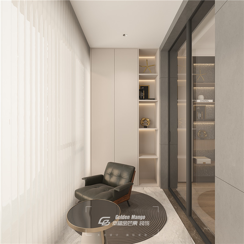 書房里的陽臺,好像一個微小的宇宙,肆意的陽光灑入室內(nèi),這里符合一切關(guān)于愜意時光的想象,既可潛心靜書,又可安心休憩。