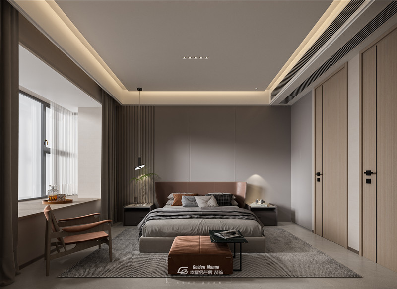 忙碌是生活的常態,選擇安放精致讓自己鮮活起來。床尾的衣柜以虛實結合的體塊感呈現出來,相異的色調在其間碰撞交錯,演繹靈動隨性之美。