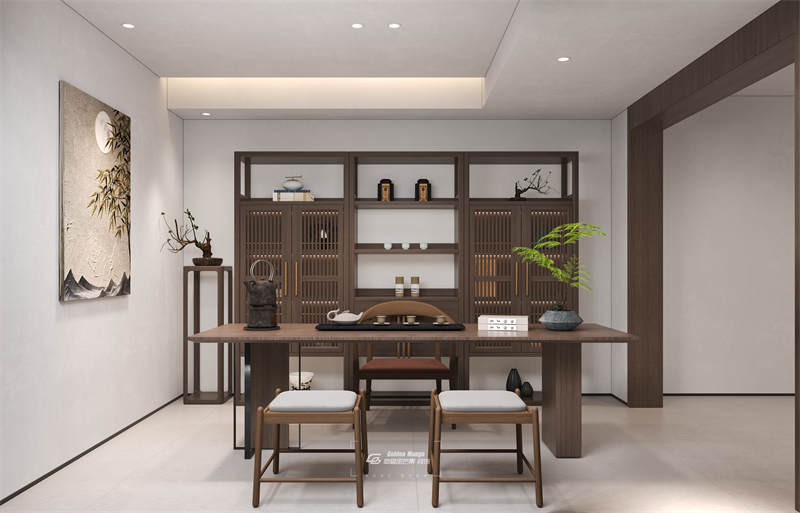 走進這座新中式宅邸,仿佛踏入一個寧靜的世外桃源,美在韻味,美在材質。