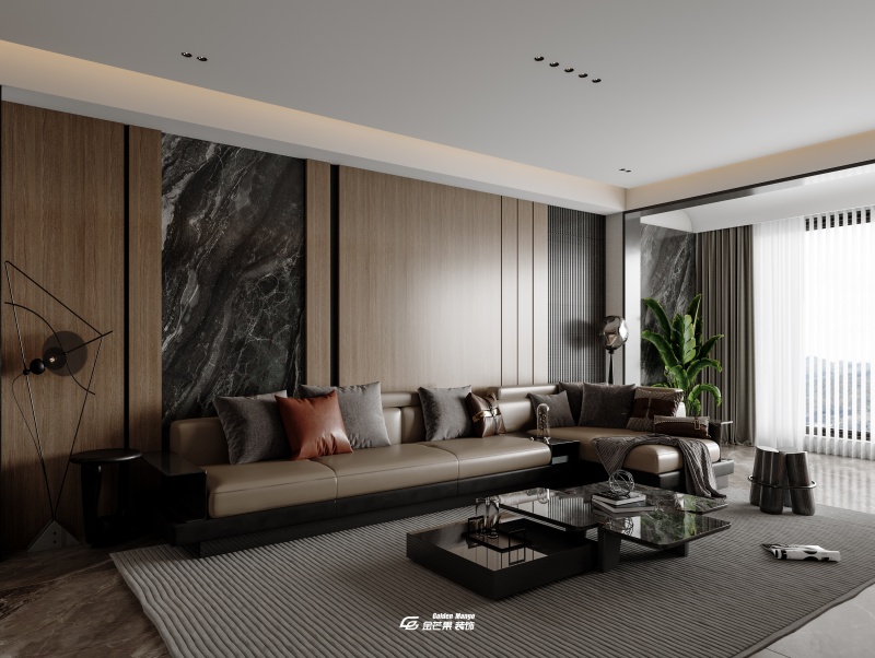 空間布局開闊流暢,沙發(fā)、茶幾等家具擺放規(guī)整,營(yíng)造出舒適有序的氛圍 。墻面運(yùn)用木質(zhì)、石材等天然材質(zhì),搭配簡(jiǎn)約的燈光設(shè)計(jì),凸顯出意式極簡(jiǎn)風(fēng)格的優(yōu)雅與質(zhì)感,同時(shí)綠植點(diǎn)綴增添生機(jī),讓整個(gè)空間兼具時(shí)尚與自然韻味 。