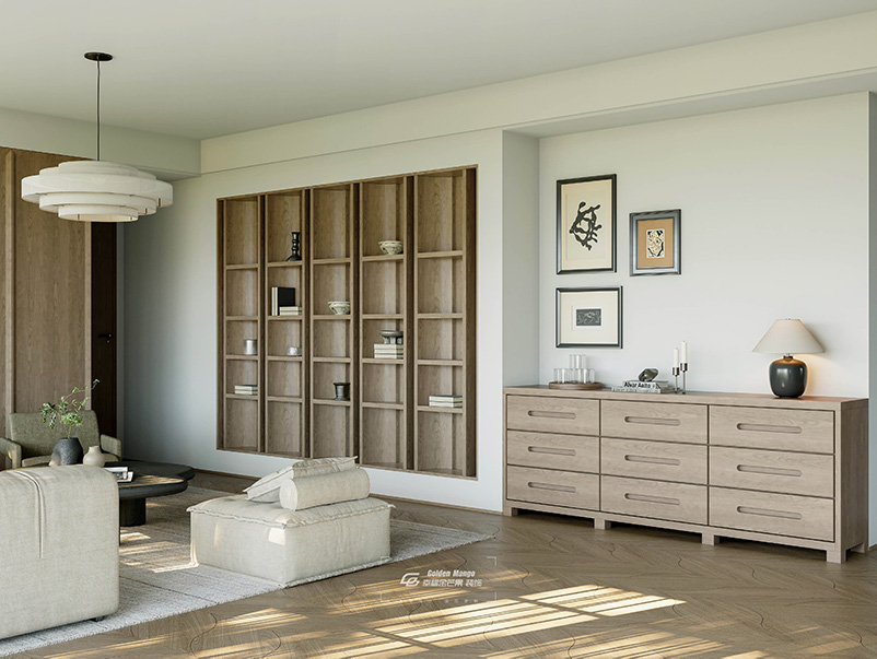 書房,是這片天地里的靜謐角落。木質的書桌與書架,沉穩而內斂,它們以古樸的姿態,承載著知識的重量。書架上擺滿了各類書籍,它們是思想的火種,在這里靜靜燃燒,等待著被點燃。當陽光透過百葉窗,灑在桌面上的筆記本上,時間仿佛在此刻凝固。