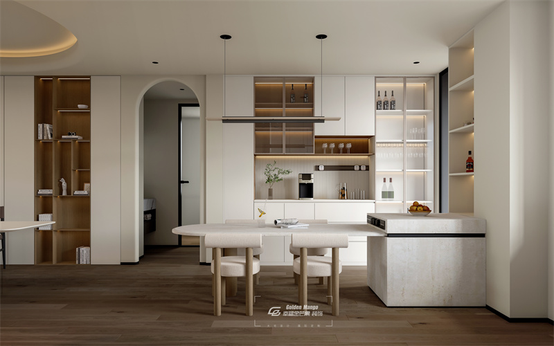 收納:嵌入式柜體與開放式展示的平衡,讓家既整潔有序,又充滿生活痕跡 —— 你愛的書籍、旅行帶回的擺件,都有專屬展示區。