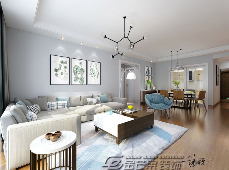 今天金芒果裝修分享一篇銀海暢園140㎡北歐風格裝修案例。經典北歐風格色彩搭配有種能讓人靜下來的意境,原木家具與綠植的點綴,室內更加自然寧靜,喜歡素色的你,這樣的家你一定會喜歡。