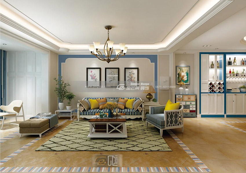 濃厚的異域風格,大膽的運用純粹色彩搭配,各個空間都有著不同的色彩搭配,基礎色調(diào)以白色和淺藍色為主要色調(diào)。處處體現(xiàn)著人文關懷。
