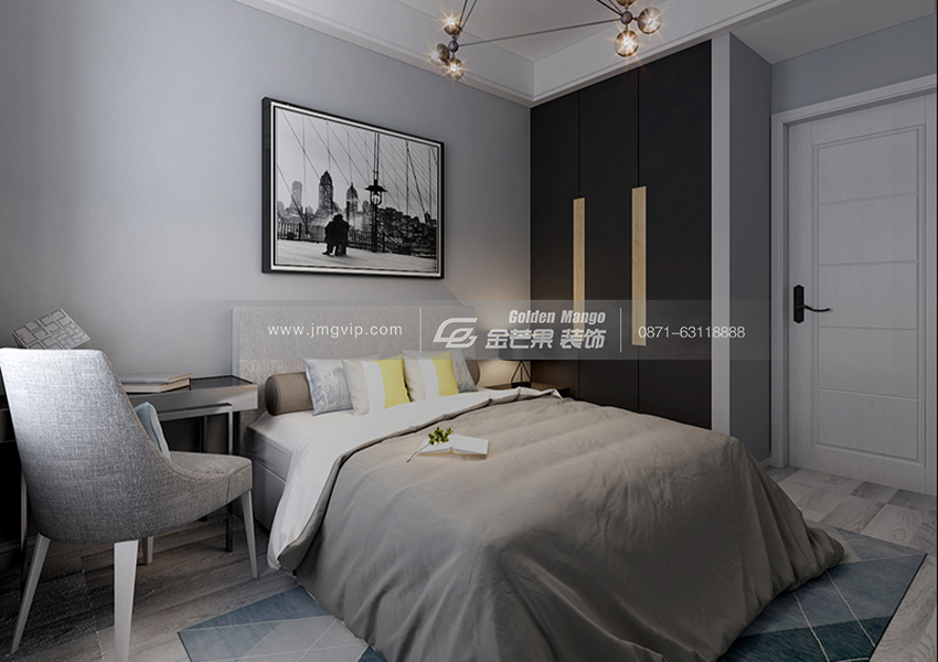 整體的灰色顯得成熟穩重,在燈的設計搭配上也有了許多的創新,注重舒適度,和人性化的設計,色彩的運用也有強烈的對比。