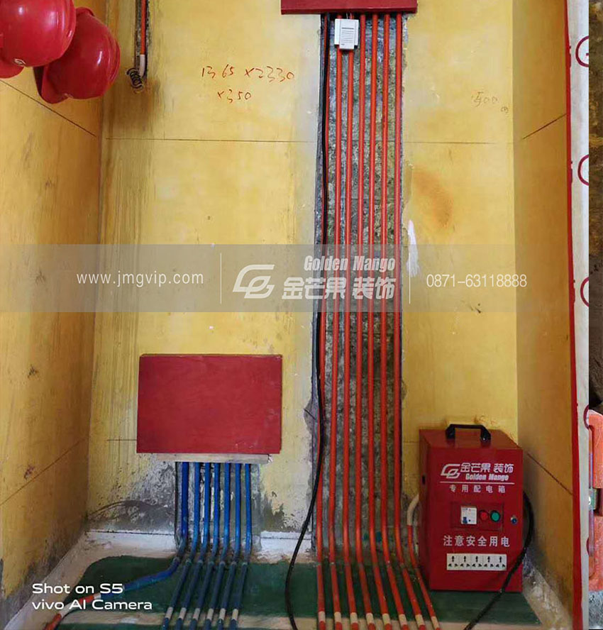 強電和弱電用不同顏色的管線區分,強弱電不一起走線,在強電和弱電交叉的地方用鋁箔紙包裹隔開,防止弱電的信號被干擾。走線過程中遇到水路管線應該電路在上水路在下。