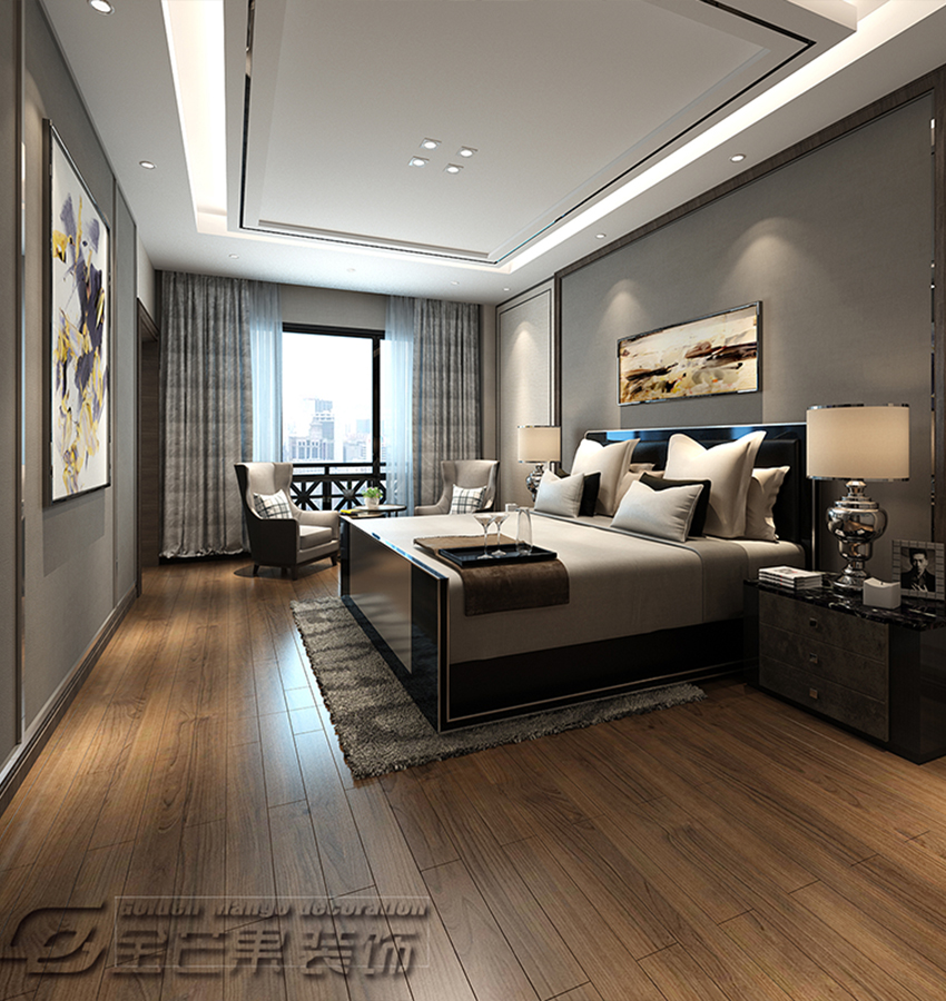 主燈和燈帶,加上灰色的搭配,保證著休息上的保障。實木的地板更加有親密的感覺,豐富的線條元素,層次鮮明。