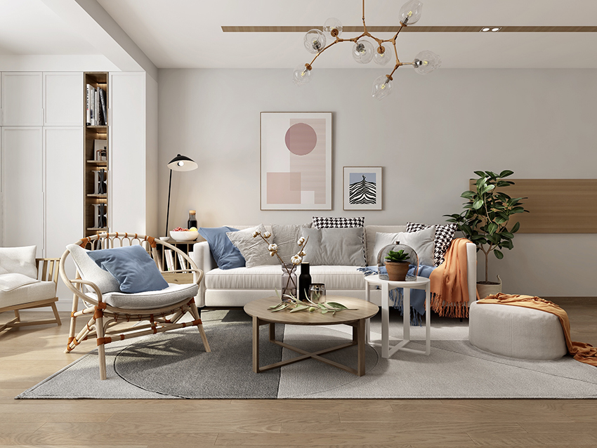 坐感舒適的布藝沙發,把自己揉入到溫柔的夢境里不用遐想其他,放松感受此刻的沉靜。原木色休閑椅和茶幾,空氣里都仿佛是空氣的清香。點綴清爽的綠植,把小森林藏進家里。