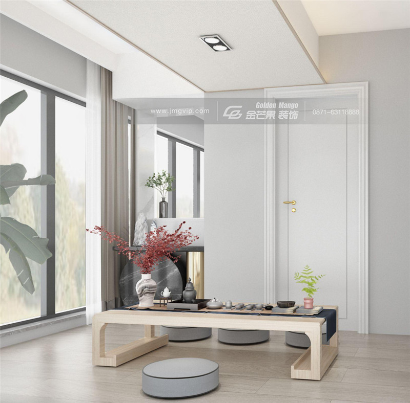 幽靜雅致,溫婉怡然,忙碌的都市生活亟待精神生活的拯救,茶室一角為家居預(yù)留了這一份詩意。采光良好的落地玻璃通透靈動(dòng),綠植和紅色花束,氣質(zhì)之余為空間營造隨意慵懶的氛圍。