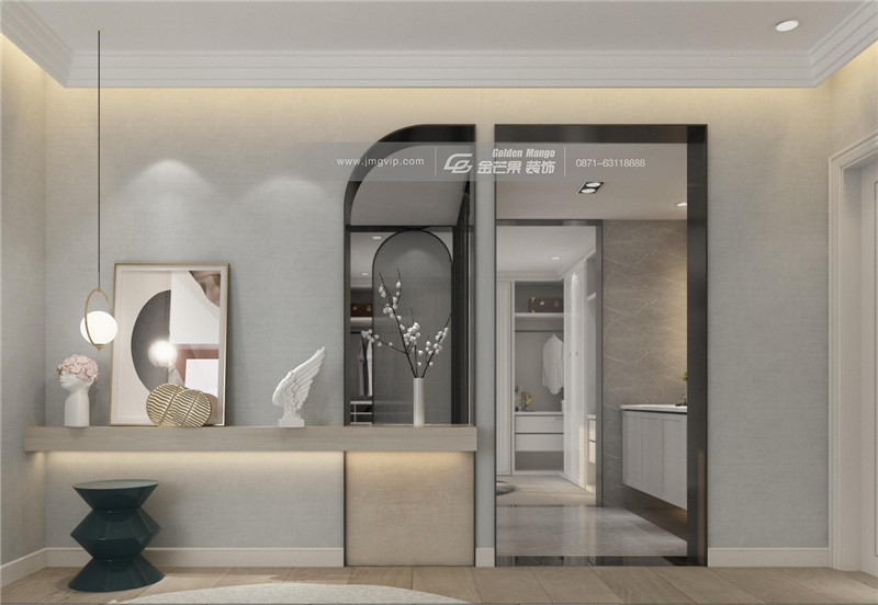 私密的臥室空間也是家居的重心,簡約的灰色調(diào)呈現(xiàn)低調(diào)的奢華,不規(guī)則的鏡子設(shè)計(jì)輕松打造空間藝術(shù)的一面,陶藝、雕塑、花束、個(gè)性簡約吊燈,抽象畫,材料的混搭令空間呈現(xiàn)一種個(gè)性質(zhì)感,細(xì)巧的小心思鋪陳開來,空間的細(xì)膩和精致也就隨之呈現(xiàn)。