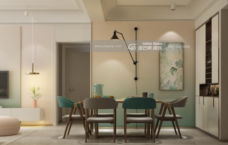 漸變的墻壁和客廳相呼應,