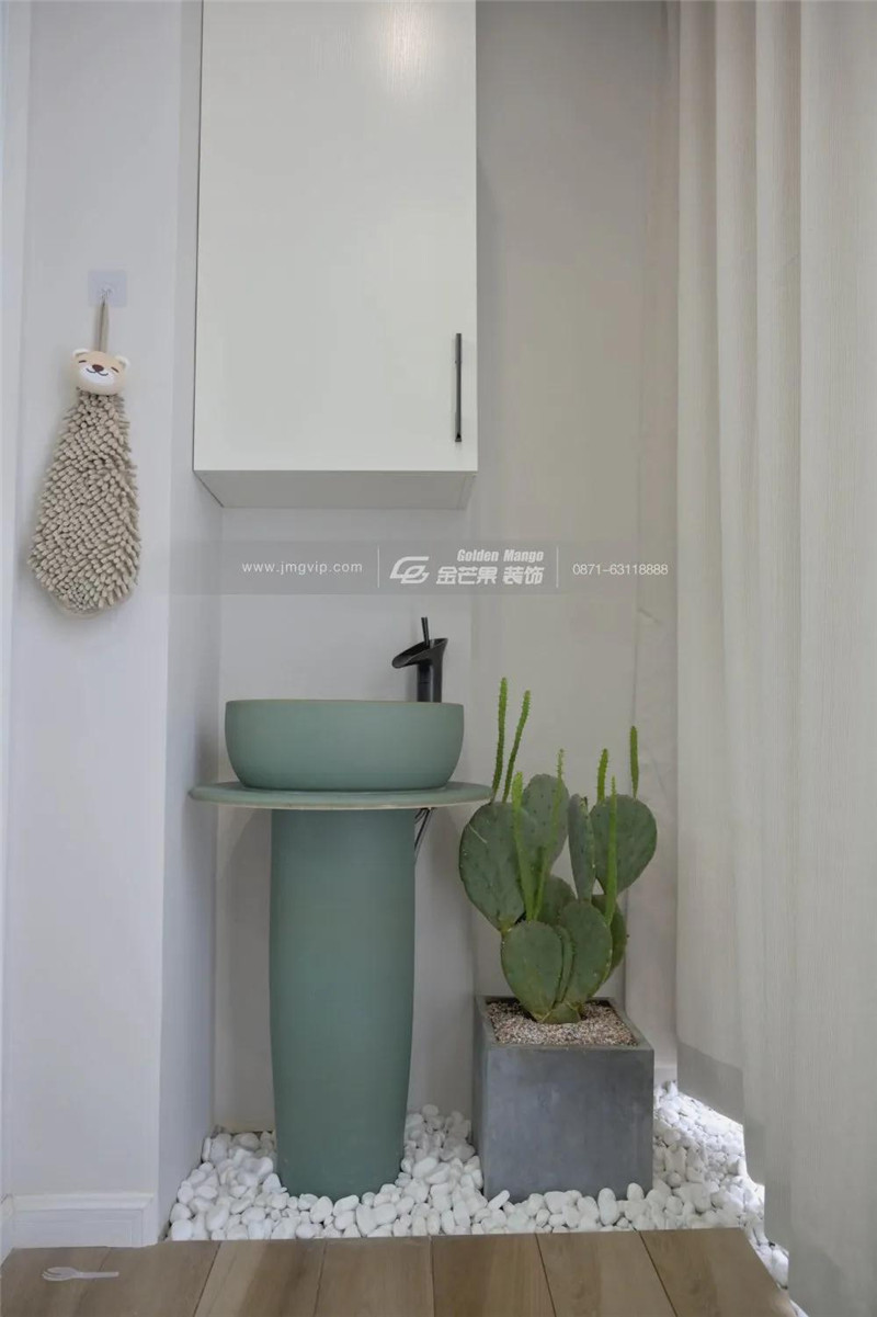 低調的暗花避免了墻面的單調,下部挑空的臺盆,降低空間擁擠感。